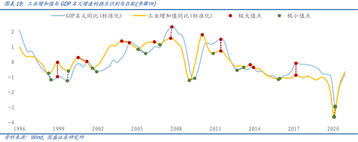匹配:即基准指标的极大(小)值拐点与候选指标的极大(小)值拐点相匹配,将基准指标拐点记为匹配;