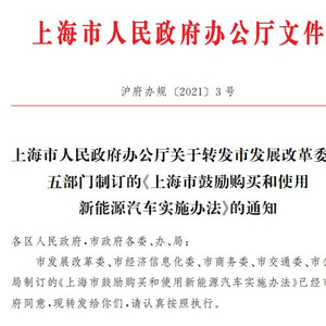 中国网汽车2月18日讯 记者日前从上海市人民政府网站获悉,上海市人民政府正式印发《上海市鼓励购买和使用新能源汽车实施办法》。据悉,该《办法》自2021年3月1日起施行,有效期至2023年12月31日。