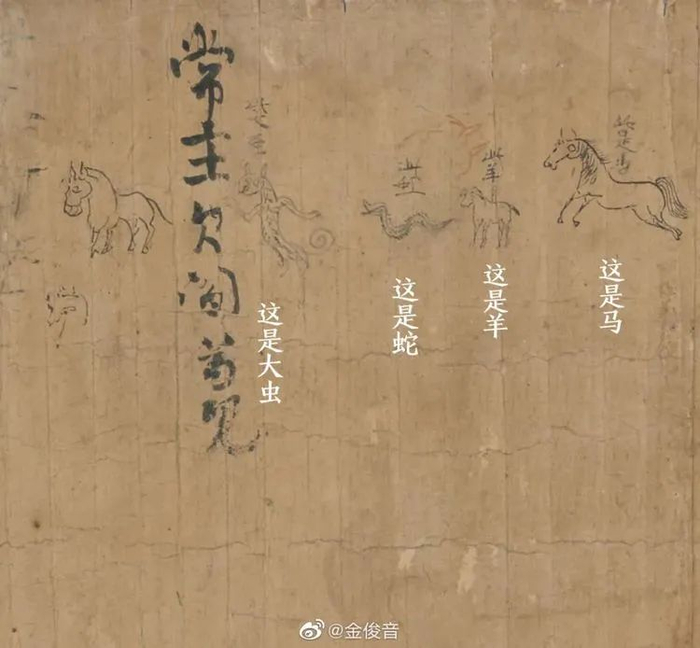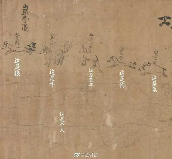 这份文献其实记载的是当时婚丧嫁娶的典礼仪注,但是背面却被当做了草稿纸,习书练字,还画了一排小动物。