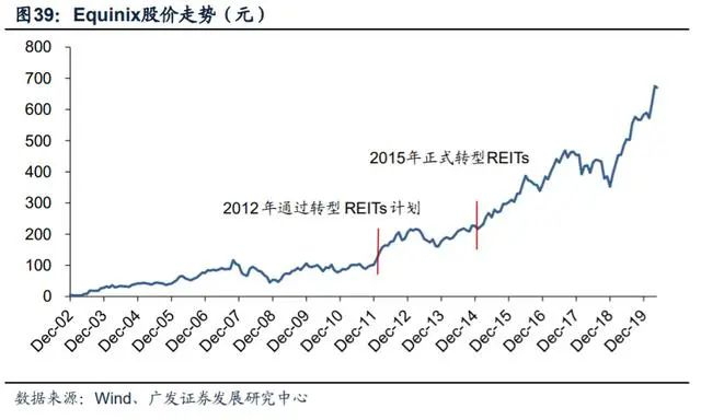 以Equinix为例看转型REITs。Equinix于2012年通过转型REITs的计划,于2014年完成转型REITs,2015年1月1日正式成为REITs,目前已成为全球最大的IDC REITs。