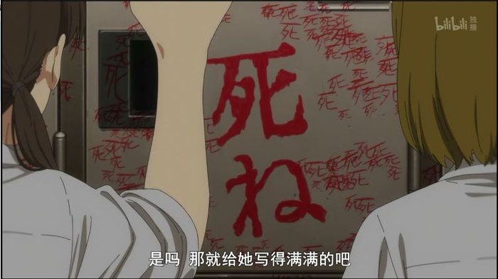 受害者鹿川裕生前被同学举行过“葬礼”,他们将鹿川的课桌放在黑板前,摆上鲜花、照片和祭品,并在横幅上写着“鹿川,再见”。同学们还在横幅上签名,并写下类似“笨蛋”“要是没有你,就太好了”等寄语。而这令人触目惊心的一幕,在《奇蛋物语》的第一集里就有所还原:恶意满满的学生在西城久留美的更衣箱上写满了“去死吧”的字眼……