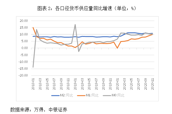 央行采取的灵活适度的货币政策为经济恢复创造了较好的流动性环境。从货币供应量来看,在央行加大基础货币投放等政策操作下,2020年2月M0同比增长10.9%,较1月的6.6%快速上行4.3个百分点,此后一直保持在10%左右的较高水平波动,M1同比增速自2月起一直维持上升趋势,M2同比增速在3月快速上升至10.1%,较2月上行1.3个百分点,创下2017年3月以来的新高,此后一直在10%上方波动。