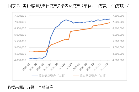 外部环境也对我国货币政策操作构成明显扰动。虽然近期欧美等主要发达国家和地区相继批准了新冠疫苗的使用,但当前海外疫情仍未得到实际上的有效控制,经济增长前景不确定性依然较大,因此海外央行的货币政策维持宽松力度不减,也对我国造成了外溢性影响。首先,海外主要发达国家和地区央行维持利率在较低水平,由此带来了我国与海外主要主权债券的利差维持在较高水平,在我国加大资本市场对外开放的背景下,海外资金持续净流入我国资本市场。截至2020年11月底,境外机构持有我国国债余额1.79万亿元,占比9.55%,较2019年底多增4859亿元,在我国国债市场份额上升1个百分点。其次,海外资金持续流入我国,给人民币汇率造成明显升值压力,抑制我国对外贸易部门出口竞争力。再者,海外主要发达国家和地区的宽松货币政策环境也给我国货币政策宽松打开了空间,为应对国内外可能发生的不确定性提供了充足的对冲性货币政策工具。