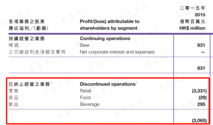 在2015年前8个月中,这些“已终止业务”,实现营业收入984.2亿港元,净亏损为30.7亿港元。