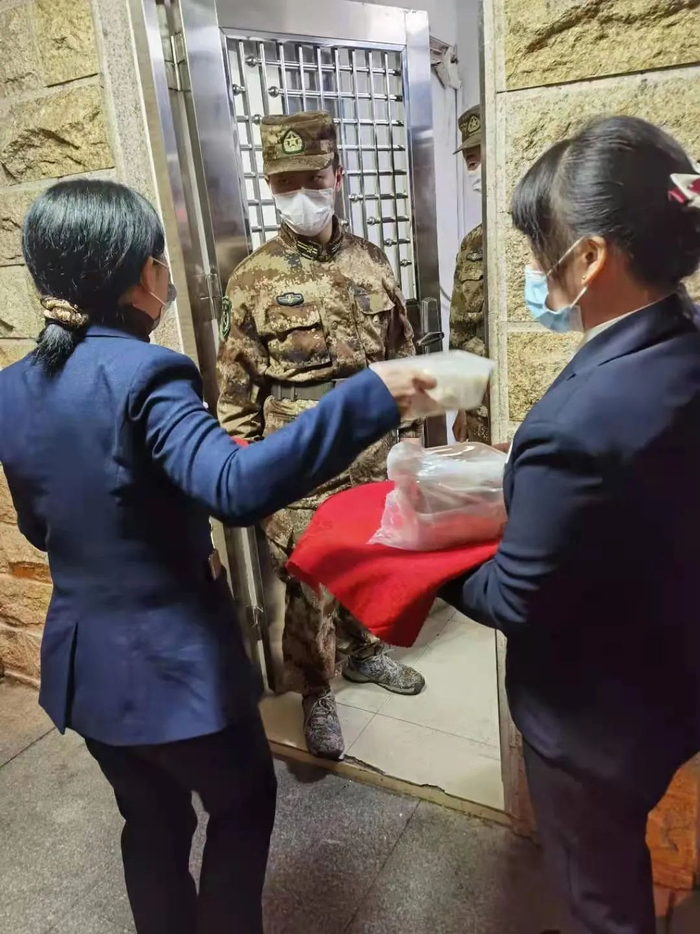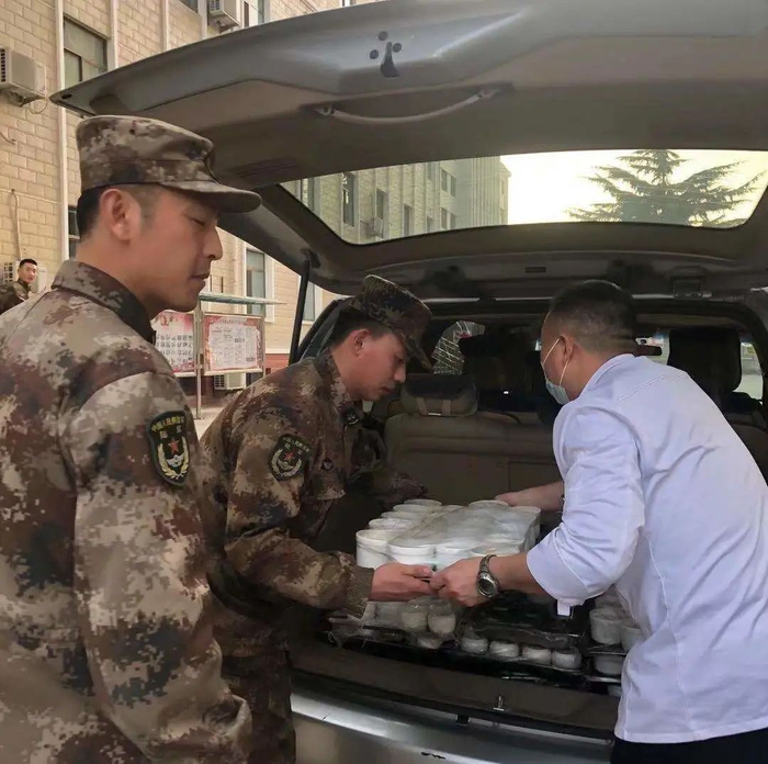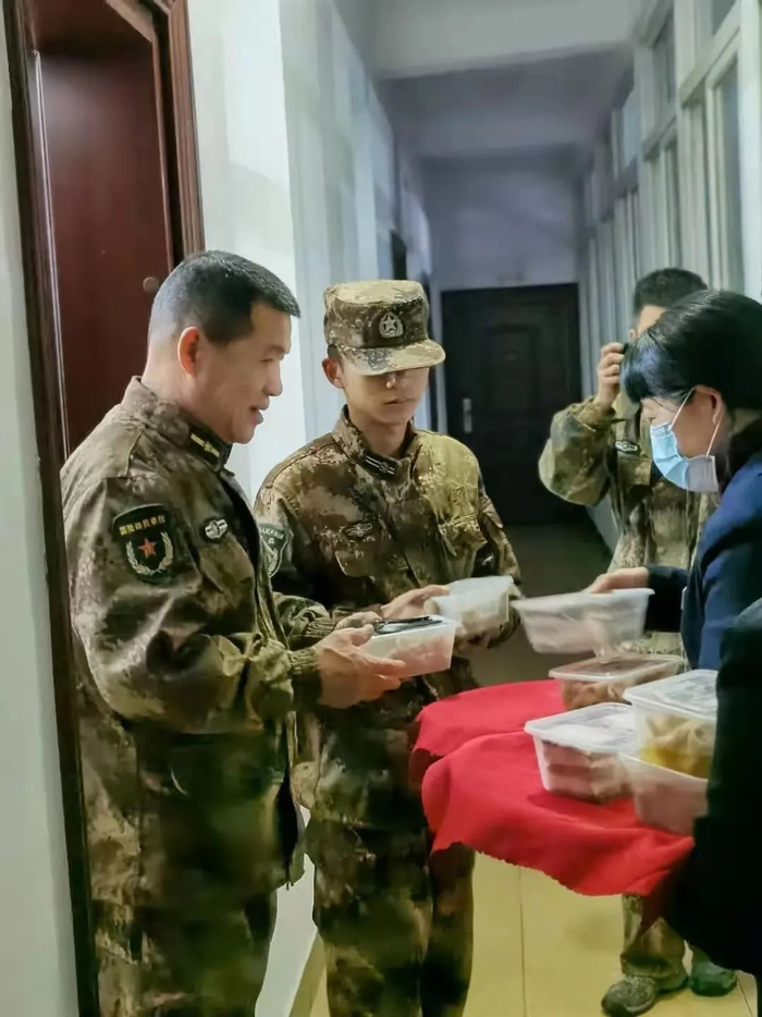 成都融通新华宾馆把精心制作的320盒水饺、汤圆送到西部战区的15个值班执勤点位上。