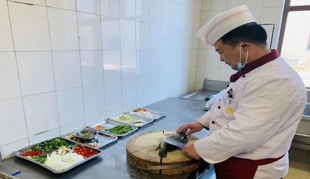 济南联勤宾馆行政总厨携食材走进北部战区陆军某连队,现场帮厨烹制年夜饭。