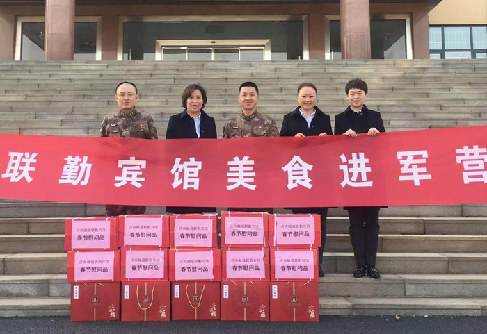 文教公司融通党校主校区银轮宾馆积极开展为军惠军系列活动,主动走访当地驻军,春节期间前往3家军队单位送去精心自制酱肉等慰问食品,并征询官兵需求意见,做细做实有温度有质感的服务保障。