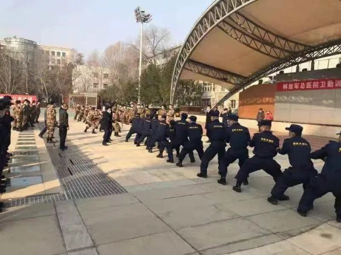 安防国际301医院项目部,春节期间坚持把为军惠军做为首要任务,和留队官兵一起坚守岗位,同执勤,同欢乐:不仅和留队官兵举行了防暴演练,还和留队官兵开展了拔河比赛。