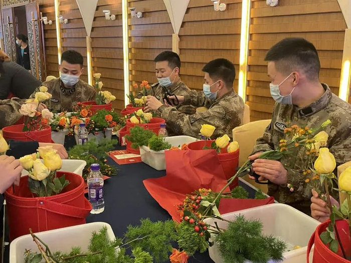 成都望江宾馆举办“花漾新春”花艺培训活动,45名留队官兵及军属体验手工花艺。园林部进行了花艺基础知识讲授,花艺师现场指导插花创意和技巧,通过理论与实践结合的形式让官兵和家属掌握了插花基本技艺。借着暖色调的玫瑰、洋桔梗、澳梅和红豆,配上平时不多见的各种材料,经过两个小时培训,一件件美丽的作品展现在大家面前。