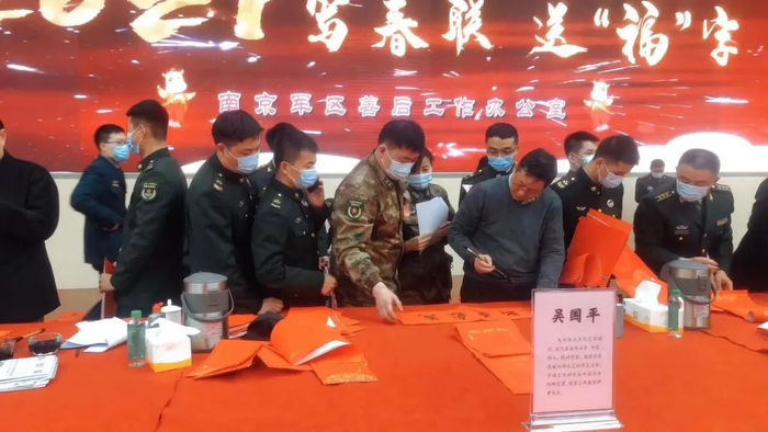 南京九华饭店组织文化艺术顾问、书法名家赴部队基层单位写春联、送福字、赠书籍。