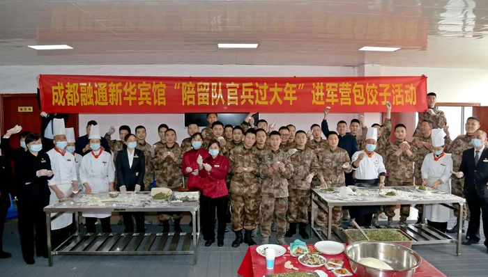 成都新华宾馆前往驻蓉基层部队给官兵包饺子过新年。