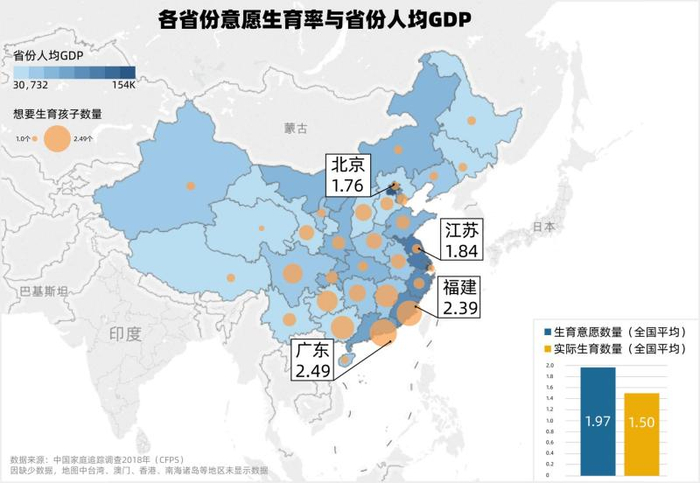 从统计数据看,各地的实际生育数量都要低于生育意愿数量,但不同地区仍然存在相当大的差异。