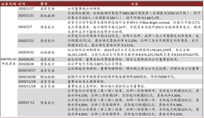 图表: 中航资本2020年初至今(2021/2/16)主要事件梳理