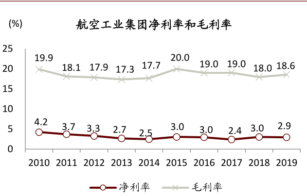 图表: 航空工业集团毛利率、净利率和ROE(平均)