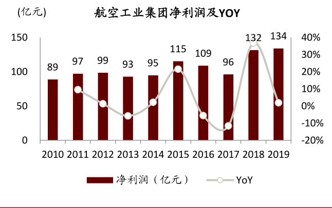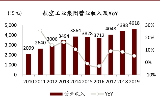 图表: 航空工业集团营业收入和归母净利润及YoY