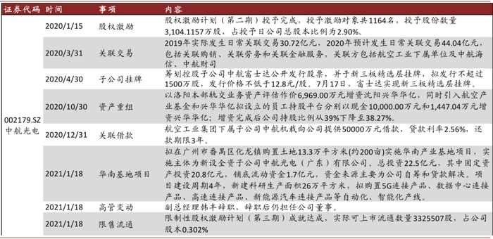 图表: 中航光电2020年初至今(2021/2/16)主要事件梳理