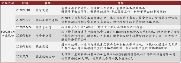 图表: 中航高科2020年初至今(2021/2/16)主要事件梳理