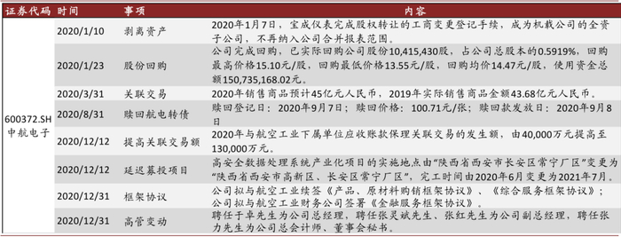图表: 中航电子2020年初至今(2021/2/16)主要事件梳理