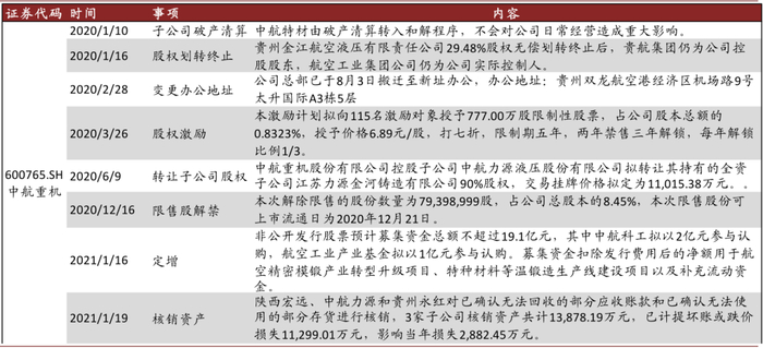 图表: 中航机电2020年初至今(2021/2/16)主要事件梳理