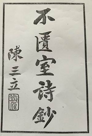 胡汉民《不匮室诗钞》陈三立题签,照片翻拍于上海图书馆