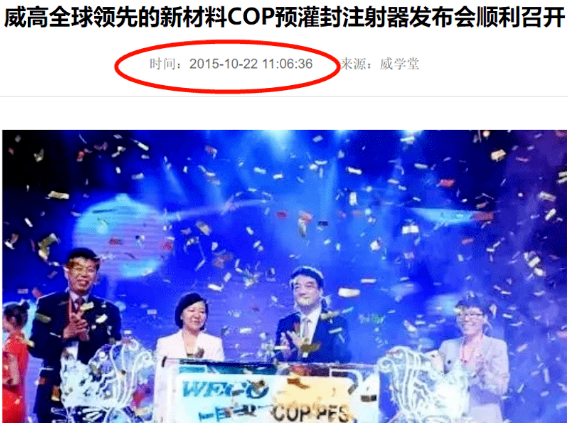 早在2015年山东威高集团,就率先在国内研发并生产出的新型材料COP预灌封注射器正式量产并投入使用,这是威高研发团队经过5年时间研发而成。