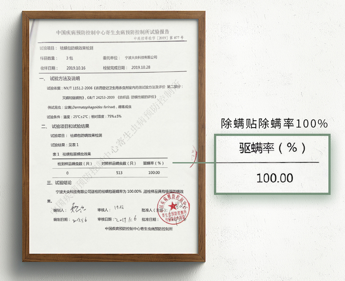 检测报告,袪螨率高。