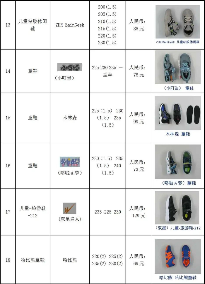 外底耐磨性能方面,哆啦A梦、Reshake、ZHR BainGes3款童鞋样品外底耐磨性能低于现行产品标准最低要求,鞋底抗磨损能力较差。