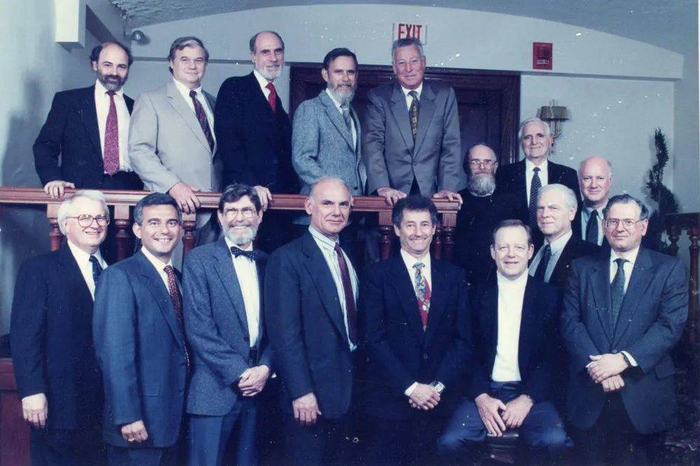 前排从左到右:Dave Walden, Barry Wessler, Truett Thach, Larry Roberts, Len Kleinrock, Bob Taylor, Roland Bryan, Bob Kahn,