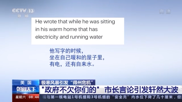 2011年,得克萨斯州就曾经历过一场类似的冬季风暴,导致大面积断电。美国能源专家在接受总台采访时指出,最新的这场“得州危机”说明得州政府根本就没能吸取十年前的教训,向电网注入更多投资,得州电网从设计到应对都存在“明显不足”。