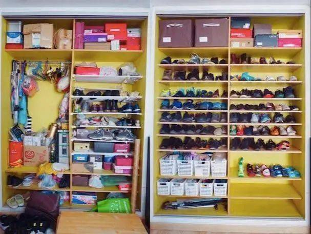 一个四口之家的鞋柜整理前后对比 图源:受访者供图