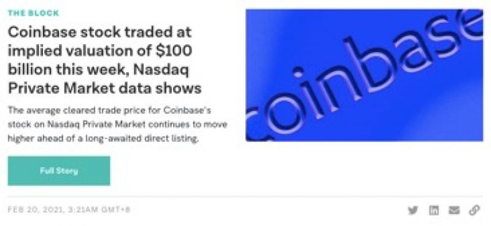 近期,随着比特币价格的不断上涨,加密货币交易量也持续增加,加密交易所成为最大的受益者。2月20日,据The Block报道,Coinbase最近的出清价格为每股373美元,这意味着Coinbase隐含估值已约为1003亿美元。