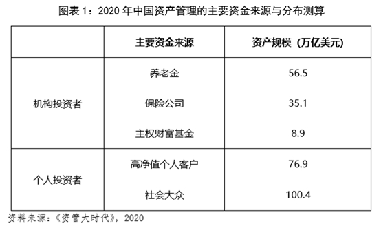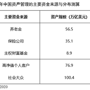 中国已经进入规模化的资产管理大时代。下表列出了普华永道对2020年中国资产管理的主要资金来源与分布测算。