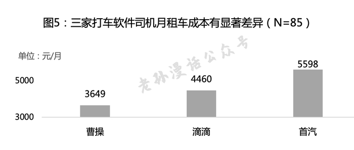 根据上一篇的数据分析,网约车的租车成本比传统出租车的“份子钱”成本更低。车厂出身的曹操在租车成本上优势明显;但同样作为车企,首汽的租车成本却高企,可能的原因有运营效率不佳,或者是车辆定位高端。调查数据显示首汽平均月租车成本比滴滴高了25.5%。