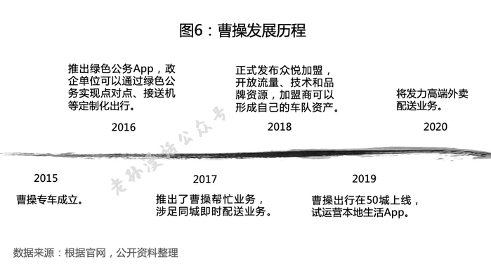 曹操出行成立于2015年,是吉利科技集团战略投资的国内首家新能源汽车共享出行服务平台,坚持的是“新能源汽车+公车公营+认证司机”的B2C模式。目前,曹操仍处于抢占市场阶段,公司依靠补贴大力扩张,尽管成立以来尝试过诸多创新业务,但各项业务仍处于亏损状态。