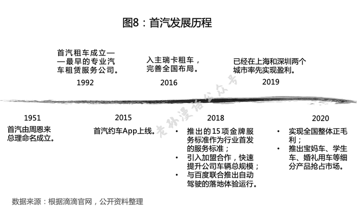首汽在重点市场的自有出租车队,为其网约车业务上线之初提供了稳定的运力保障。而首汽主要定位于注重品质的一二线城市,并针对这类市场提供了细分场景的用车服务。