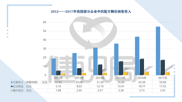 国家统计局公布的数据显示,2018年全国中药饮片销售额为2104.9亿元,但同期配方颗粒的销售额,以6家试点企业的业绩计算,仅在百亿元上下。