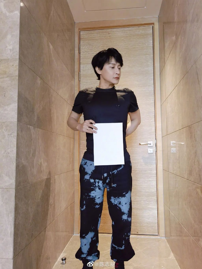 陈志朋在微博展现瘦身成果。