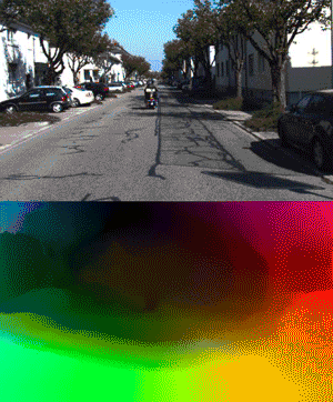 亮度代表它的速度,红色代表向右,蓝色代表向左,它把一个图像上的所有点都用速度来显示,这个就叫光流,我们在大脑的V3领域做这件事。