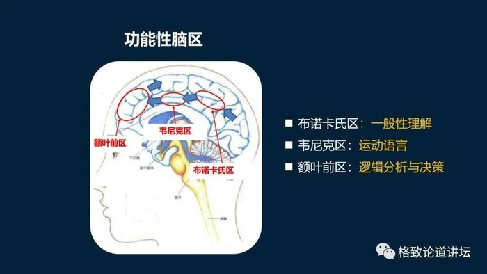 现在我们再往上走,就走到顶叶和前额叶,基本上就可以看到关于一般性理解的运动语言还有逻辑分析和决策。