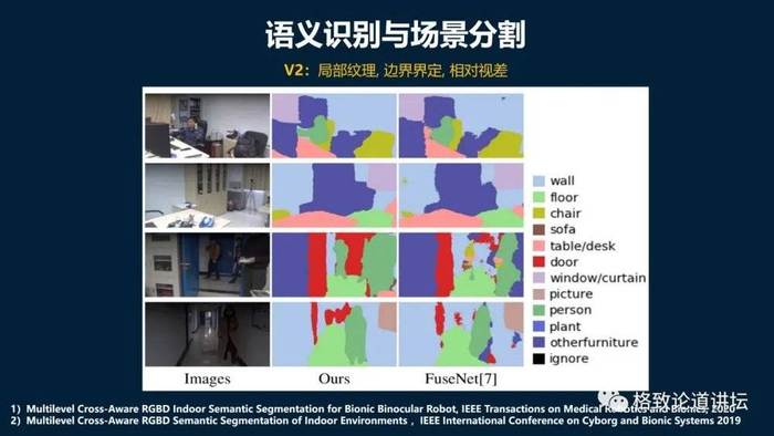 我们在图像处理上就叫做语义识别,也就是把空间的各个东西都分离出来,墙是墙,地面是地面,门是门,然后它再把语义分离出来。