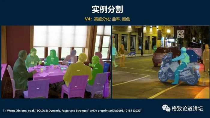 V3就更近一步了,这里面就有方向的选择或初步的运动加工,还有语义分割、光流,它和图像处理里面的语义分割或光流的检测很接近。