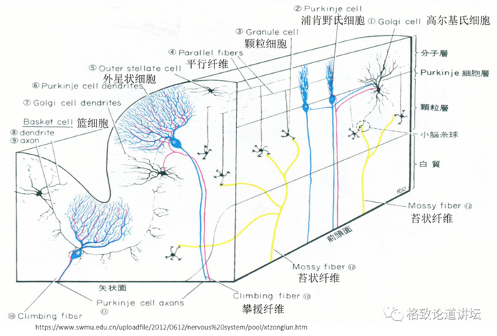 小脑上一共就有5种细胞,而且它的结构非常一致,就是非常规则。