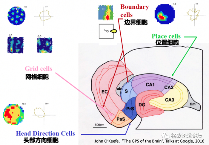 就是说海马体上有位置定位的细胞,也有头部方向的细胞,也有分界线的细胞,都是一一对应的。