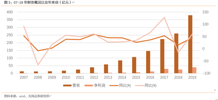 营收端:业绩稳健成长,公司具备核心竞争力。公司07年到19年营收、净利率复合增长率为29%、25%,公司上市至19年经历过四次业绩翻倍,19年业绩再创新高,营收为379.07亿元,yoy+45.86%,净利润为39.91亿元,yoy+60.24%。主要受益于智能手机爆发、公司市占率提升、产品结构高端化、产品种类拓宽多样化、自动化良率提升。从具体细项来看,光学零件和光电产品为公司主要增长动力,15-19年光学零件、光电产品以及光学仪器的平均营收增长率分别为46%、34%、6%。