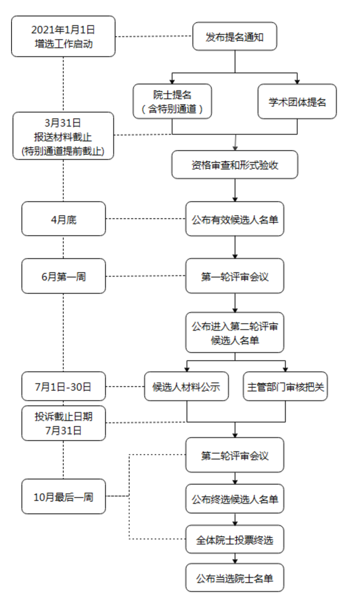 据《中国工程院院士增选工作实施办法》,院士增选每两年(奇数年)进行一次,每次增选总名额及其分配,由主席团研究决定。2021年中国工程院院士增选工作于1月1日启动,一直持续到10月,增选总名额不超过88名。