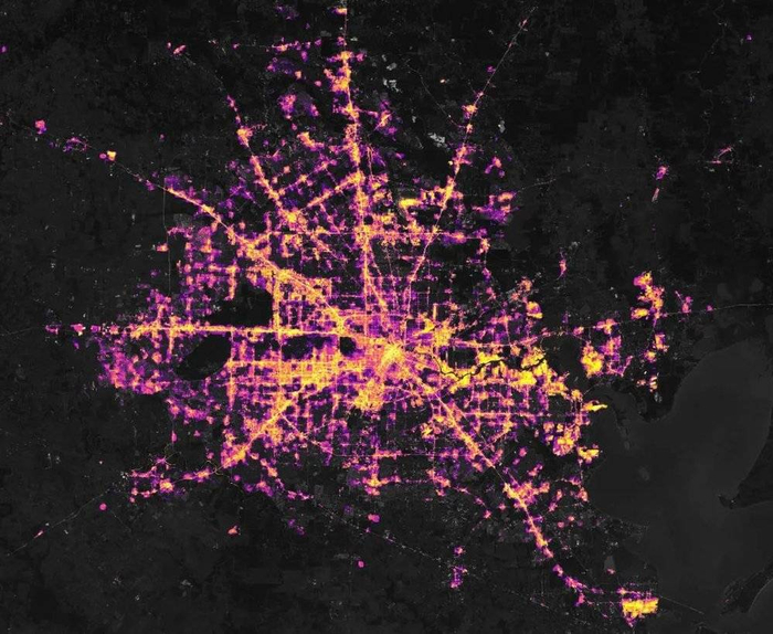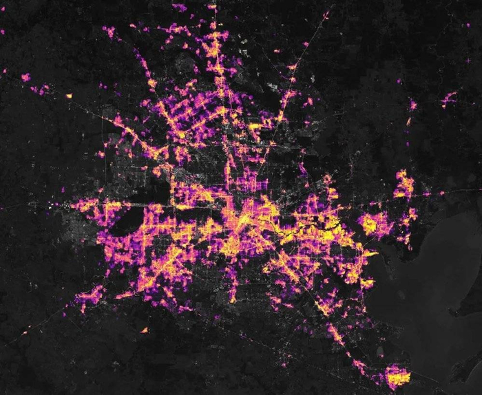 得克萨斯州-休斯敦大面积停电(上图:2月7日,下图:2月16日,图:NASA)▼