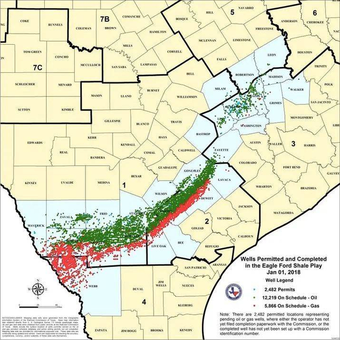 得克萨斯州有着著名的油气带,长期不缺能源不缺电,用起来也是大手大脚(图:https://eaglefordshale.com/)▼