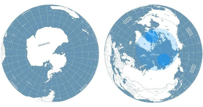 南极点在陆上而北极点在海上,北冰洋周边环境也复杂得多▼