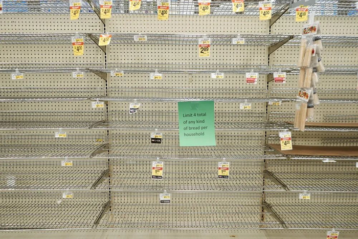 当地时间2021年2月17日,美国得州麦金尼市,一家超市里空荡荡的面包货架。