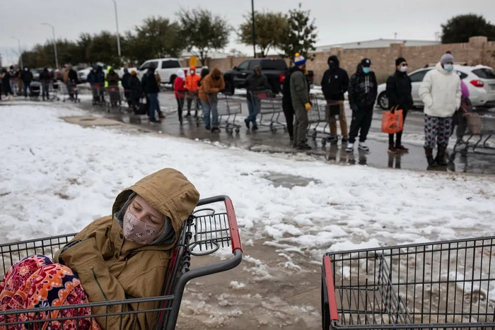 当地时间2021年2月17日,美国得州奥斯汀市,民众在一家超市门口排起长队。
